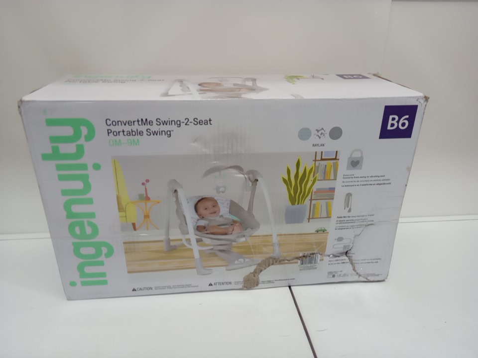 INGENUITY convertme 2-in-1 compact portable plug in automatic baby swing and infant seat - 0 to 9 months - 6lbs to 20lbs - grey (model: 12189-es)