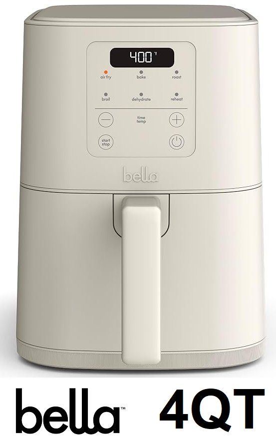 BELLA slim ceramic non-stick coating air fryer - 4qt - oatmilk (model: 35100)