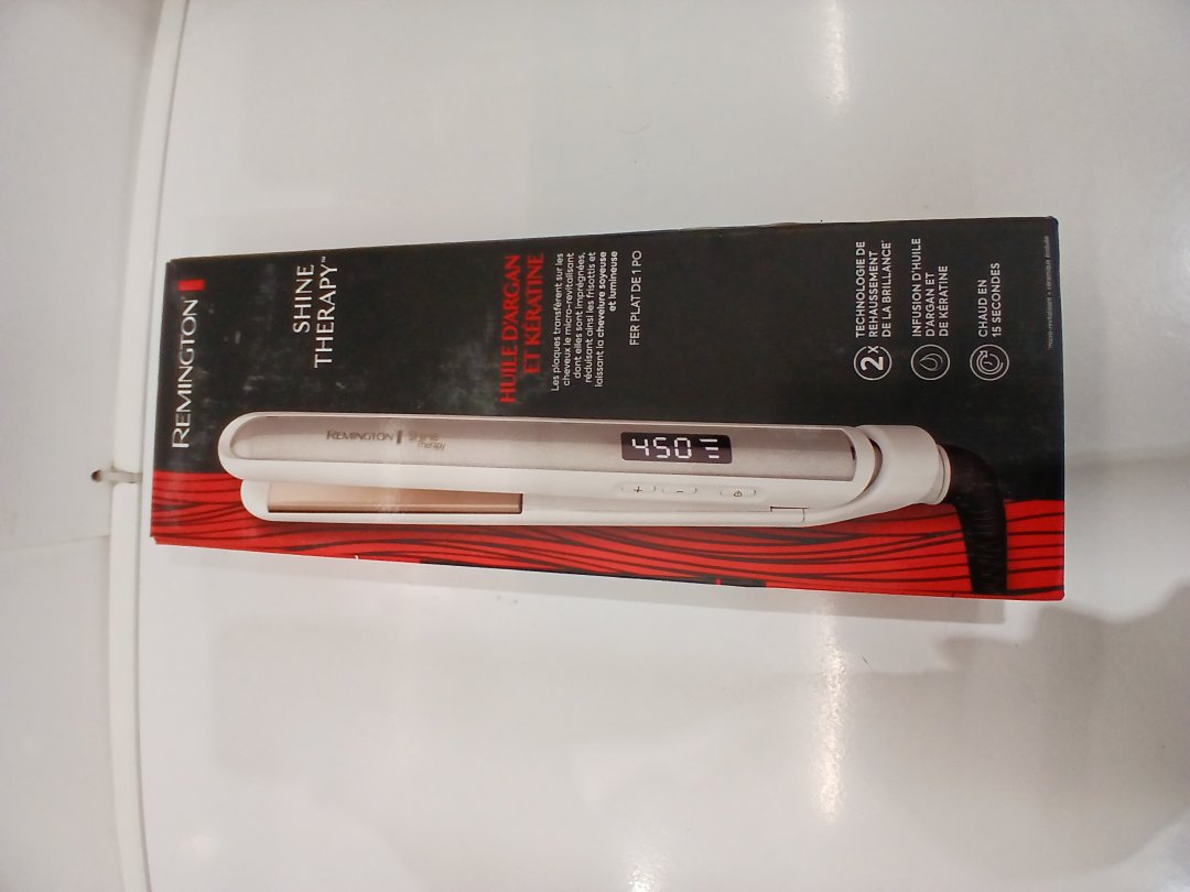 REMINGTON SHINE THERAPY FLAT HAIR STRAIGHTENER IRON INFUSED WITH ARGAN OIL & KERATIN - 1"- WHITE (MODEL: S9511)