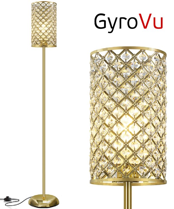 GyroVu Elegant Crystal Standing Floor Pole Lamp with On/Off Foot Switch - E26 Bulbs (Not Included) 100 Watts Max - 5.5FT - Gold (Model: ‎R-1FL-65008)