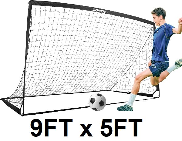 BOHEN Portable Metal Soccer Goal for Backyard with Carry Bag - 9ft x 5ft - black