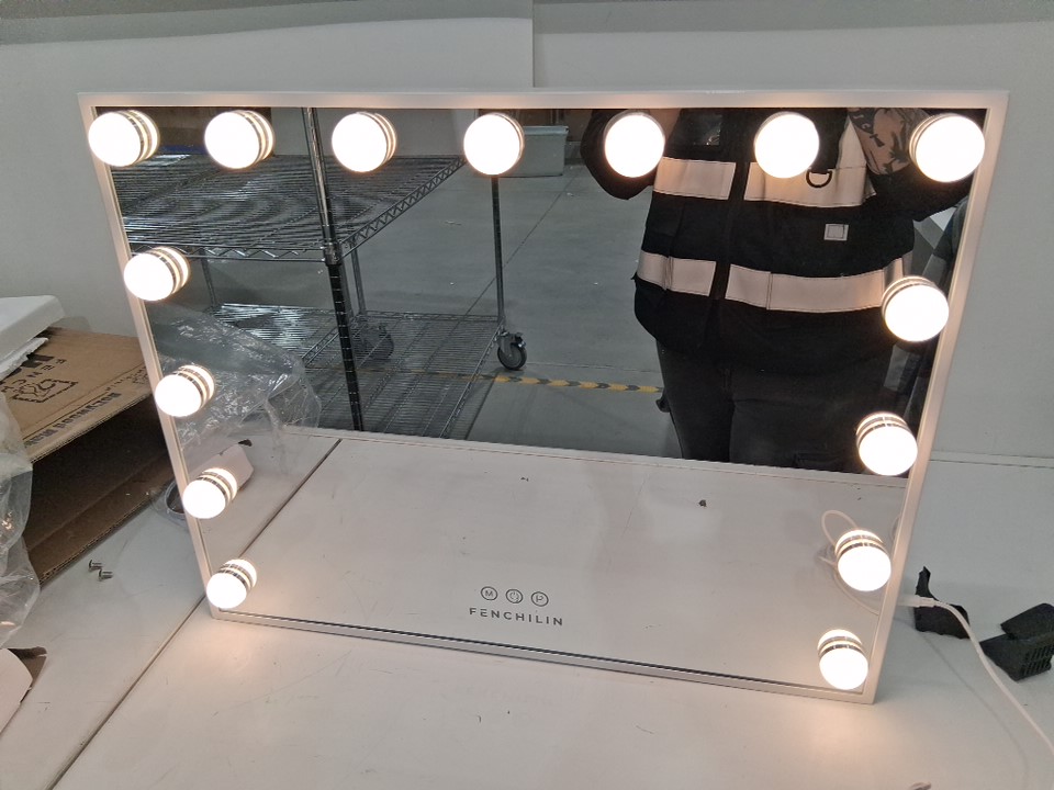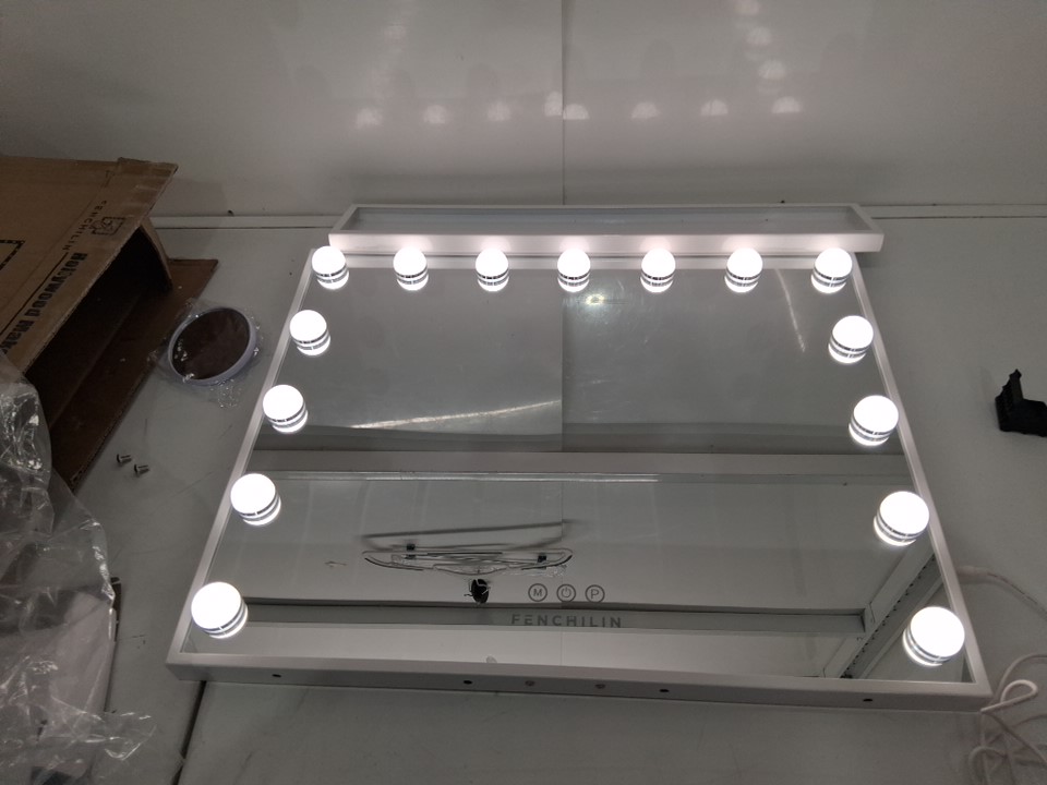FENCHILIN Vanity Mirror with Lights Warm Cool and White - 23" x 18" - White/Glass (Model: DC117-23JM)