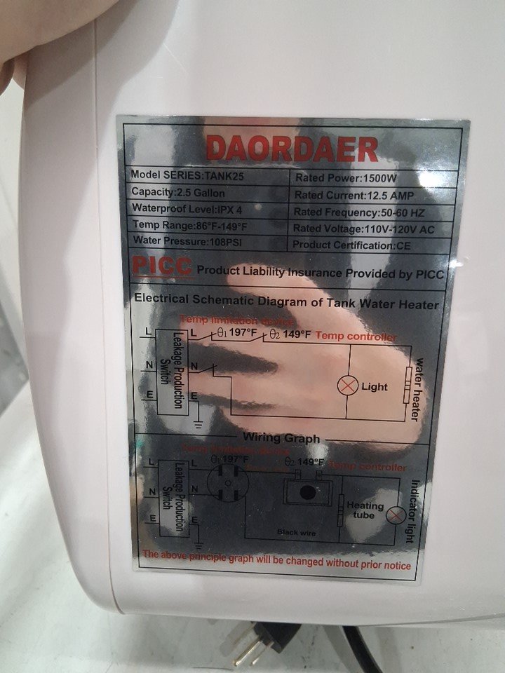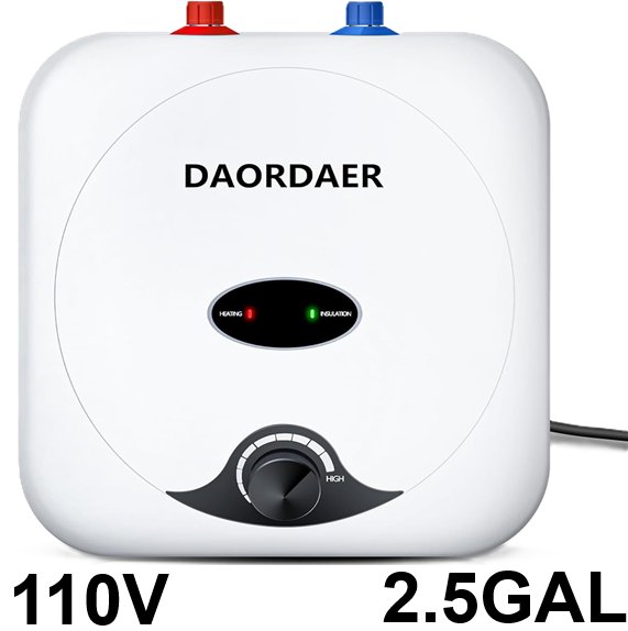 Daordaer Compact Under the Sink Mini Tank Electric Water Heater - 110v-120v - 2.5 Gallons - 1500W - White (MODEL: Tank25)