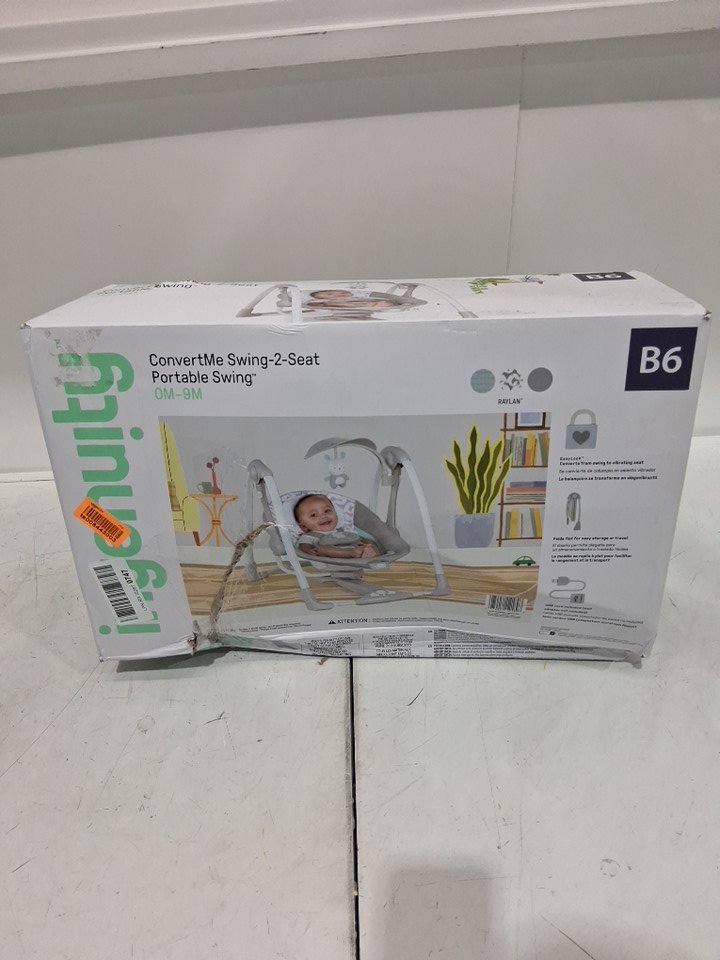 INFANT'S INGENUITY CONVERTME SWING-2-SEAT CHAIR - 0-9M - WHITE/GREY RAYLAN - (MODEL:B6)