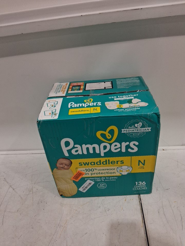 136PK PAMPERS SWADDLERS DIAPERS - NEWBORN SIZE 0