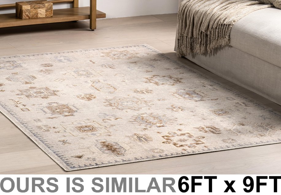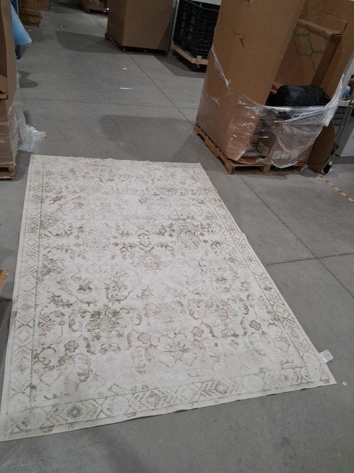 Machine Washable Anti-Slip Large Area Rug - 6Ft x 9FT - Off White/ Green
