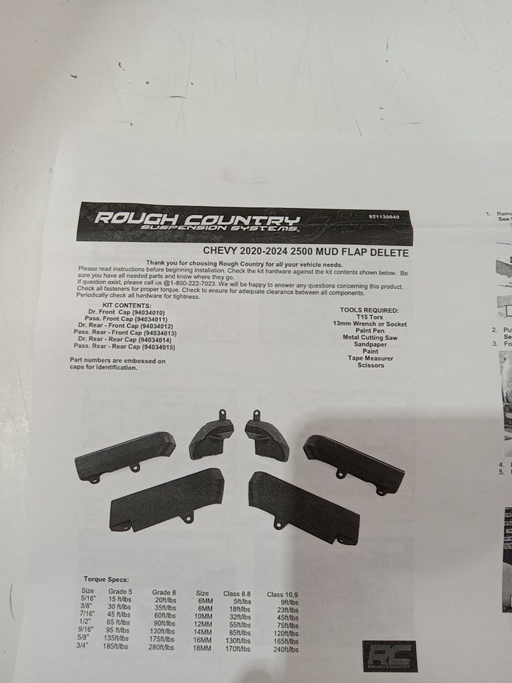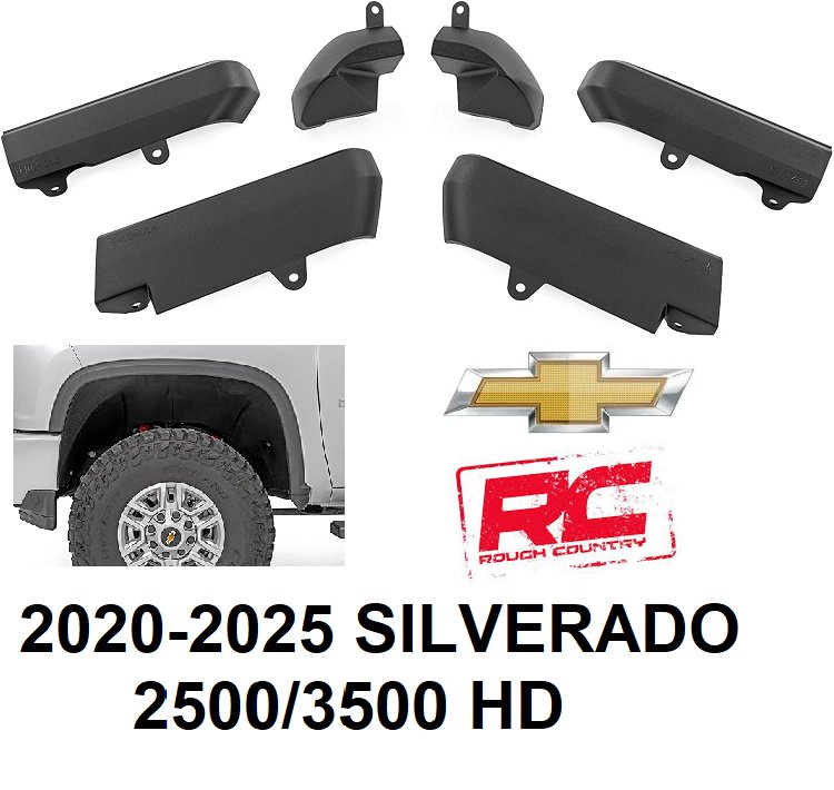 rough country mud flap delete kit for 2020 to 2025 chevrolet silverado 2500hd and 3500hd models - black (model: 13004)