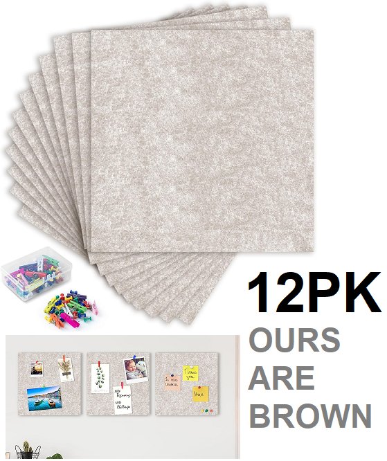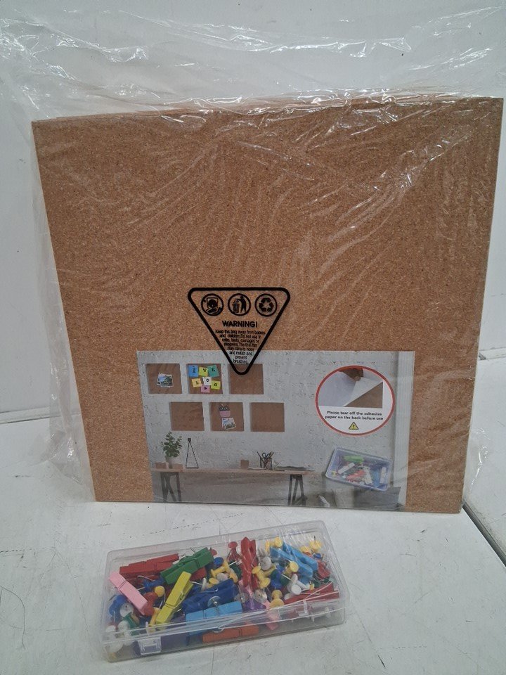 12PK AKTOP Cork Bulletin Board WITH 120 Push Pin Wood Clips - 12" X 12" - BROWN