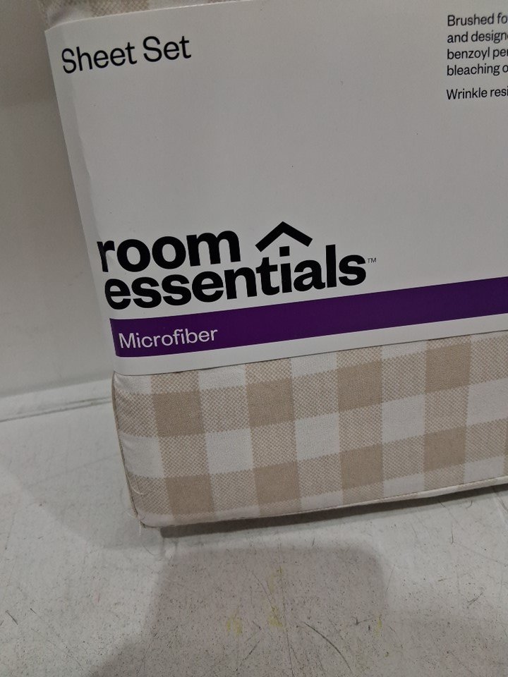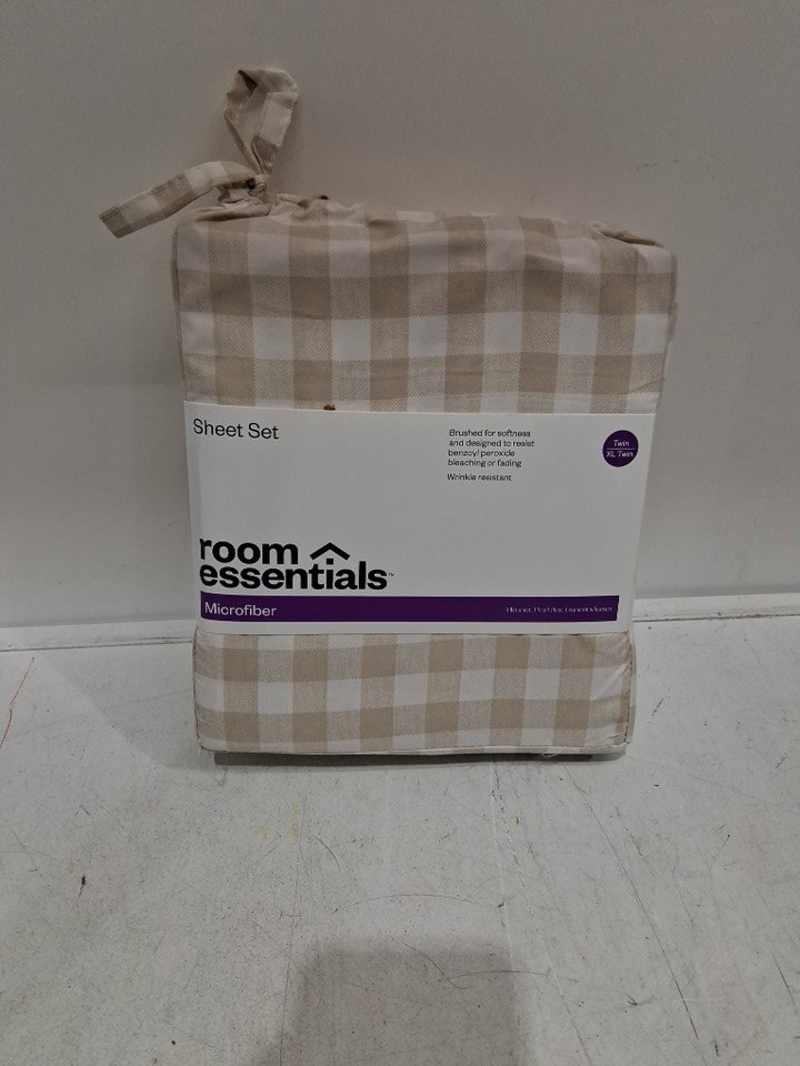 3pc room essentials Microfiber Sheet Set - TWIN / TWIN XL - Khaki Gingham