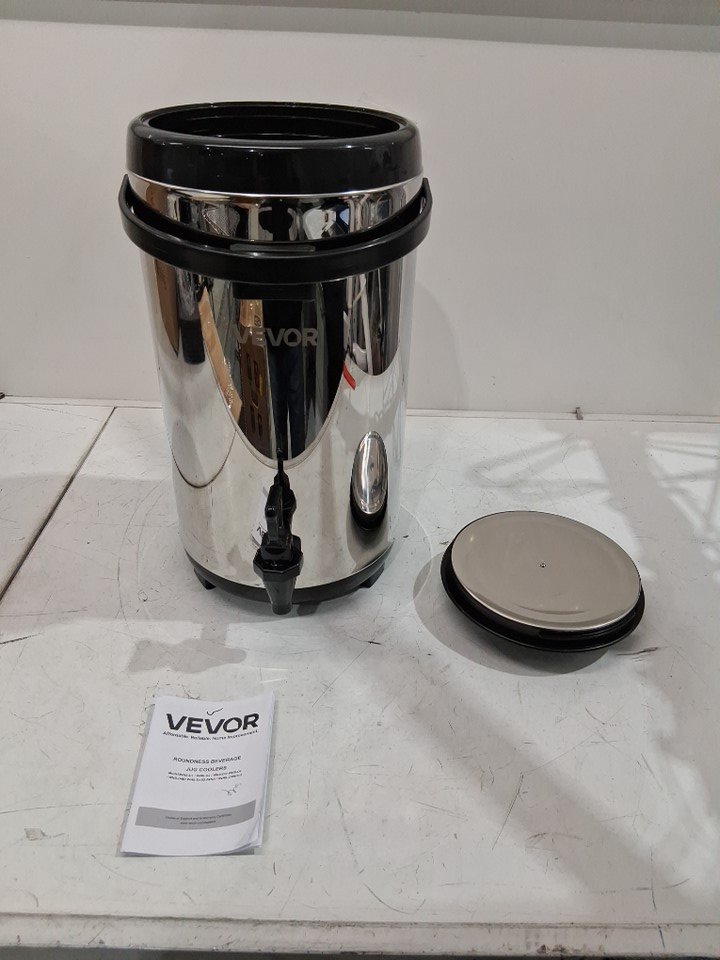 VEVOR ROUNDNESS BEVERAGE JUG COOLER WITH FOLDABLE LEGS - 2.4GAL - SILVER/BLACK