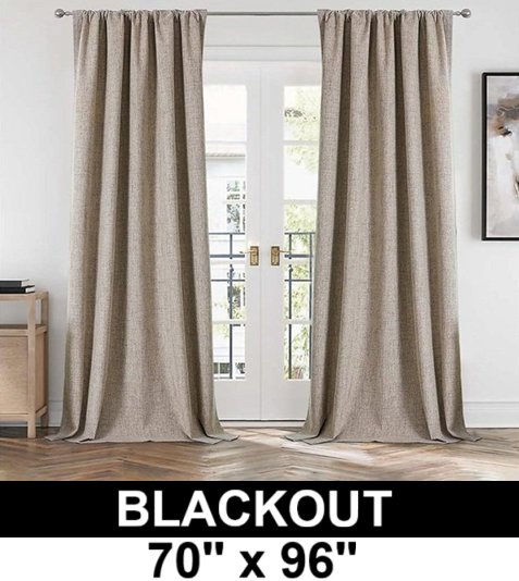 (2 Panels) BLACKOUT pinch pleated Linen textured Curtains - 96'' x 70'' - beige