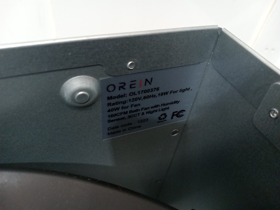 OREiN Bathroom Exhaust Fan with Light & Humidity Sensor - 3000k, 4000k, & 5000k with a night light at 2200k - white (model: ol1700376)