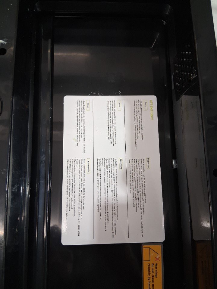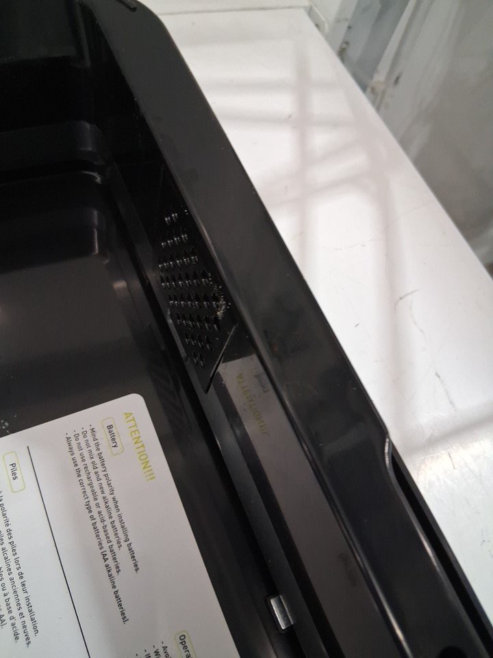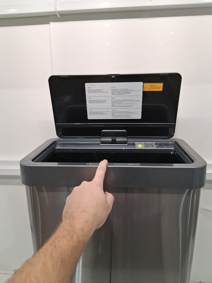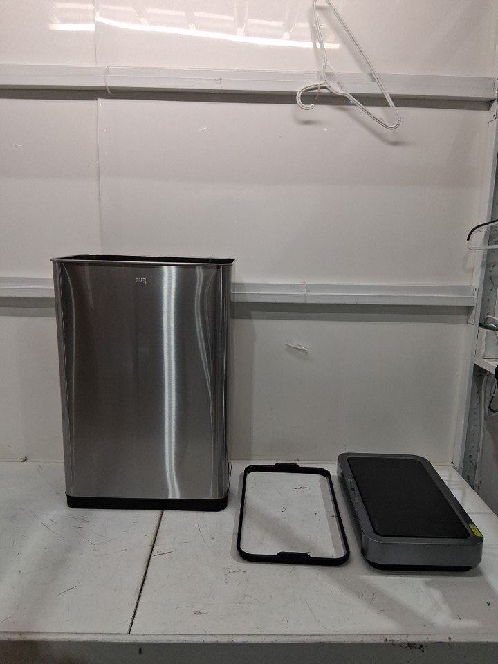 product does have a plethora of stains and marks located throughout the product's lid as well as multiple spots on the bin proper. product was tested for power and function
