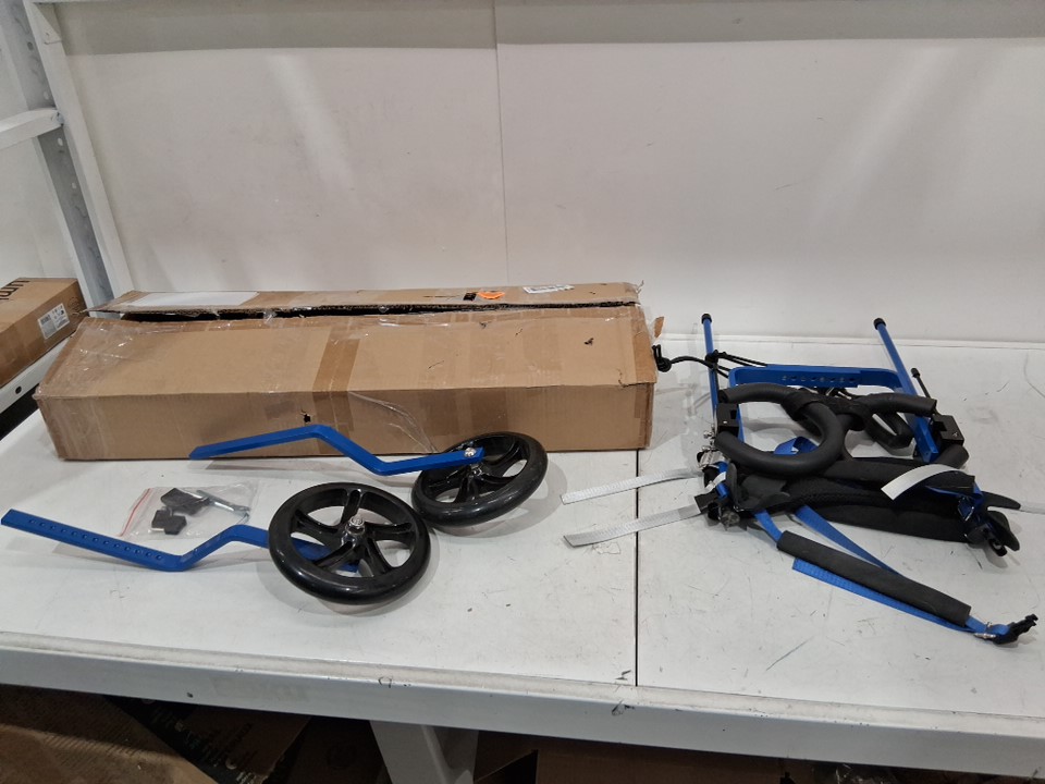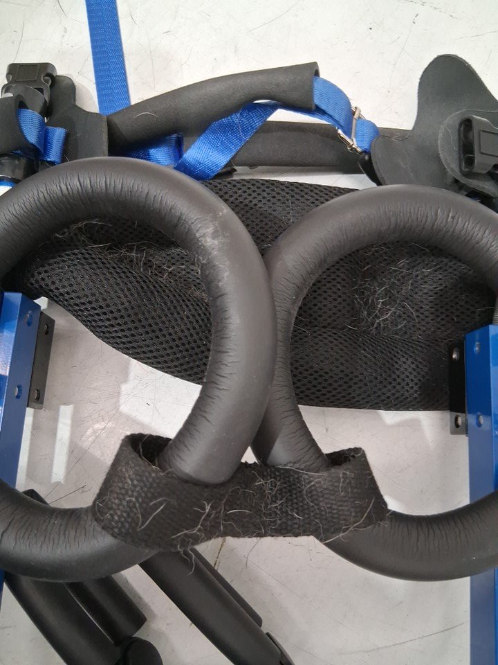please note due to not being in retail packaging we are unsure of the size of the item. the chest strap measures 11.5" inches. there is dog hair/dirt/markings on the item as well as a smell from previous use. see photos.