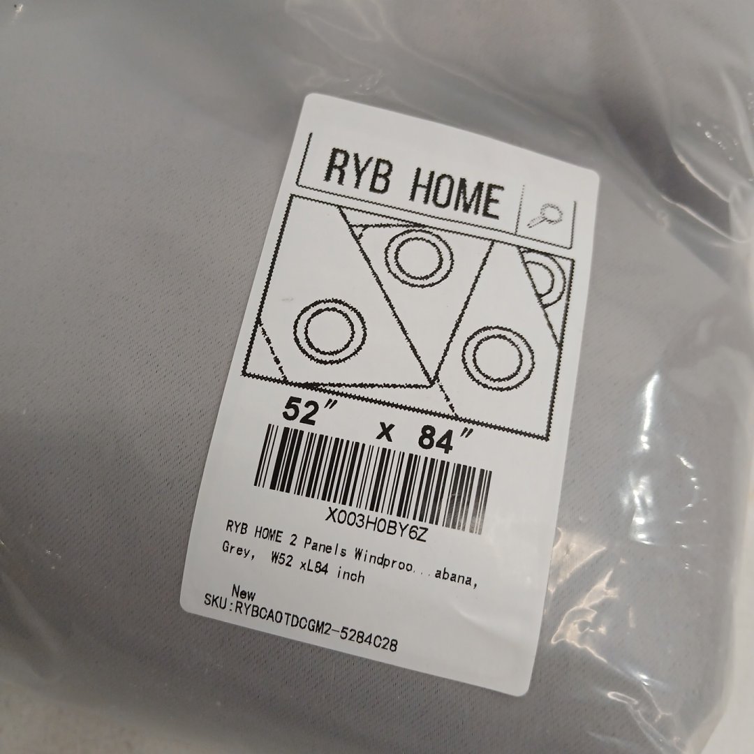 2PK RYB HOME WINDPROOF OUTDOOR CURTAINS FOR PATIO, WEIGHTED HEAVY DUTY DRAPES (INSULATED, BLACKOUT) PRIVACY SHADES FOR BALCONY - 52" X 84" - GREY