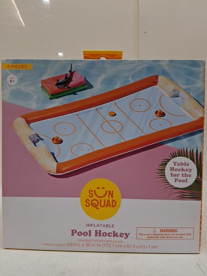 Sun Squad Inflatable Pool Hockey with Strikers and Puck - 68" x 36" - Orange/Blue