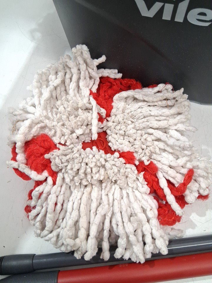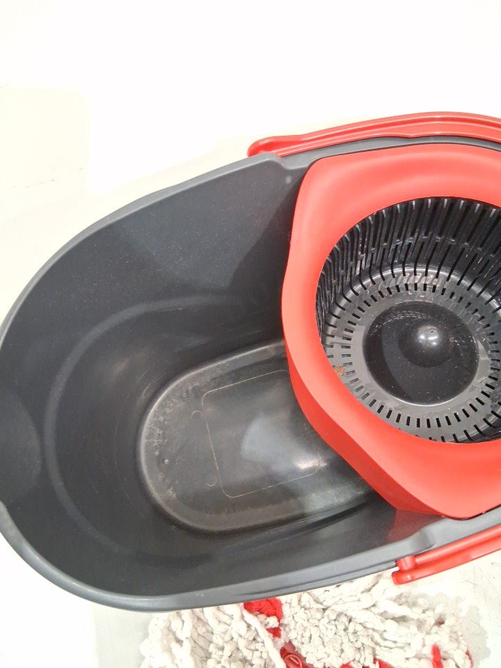 item has dust and debris in the mop bucket and on the mop head from previous use - see photos