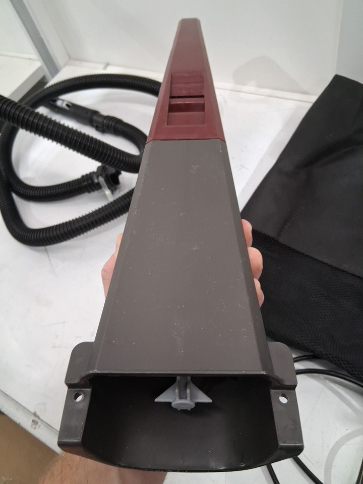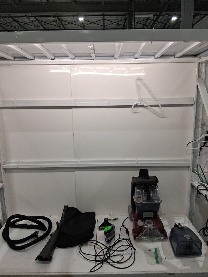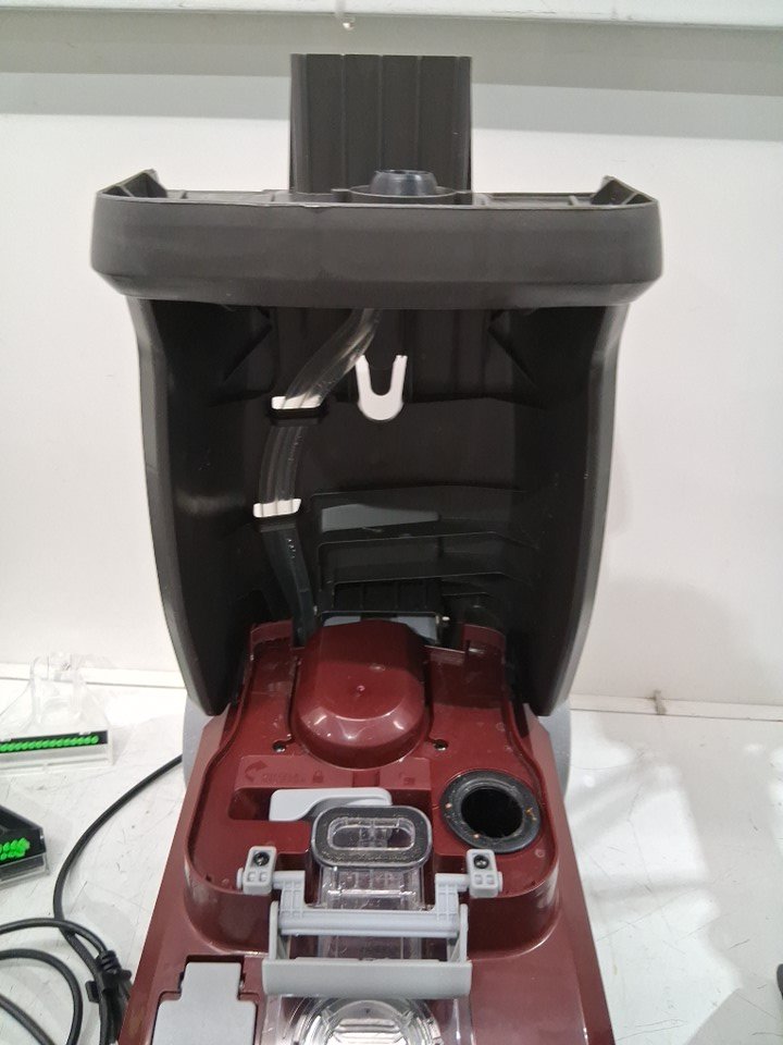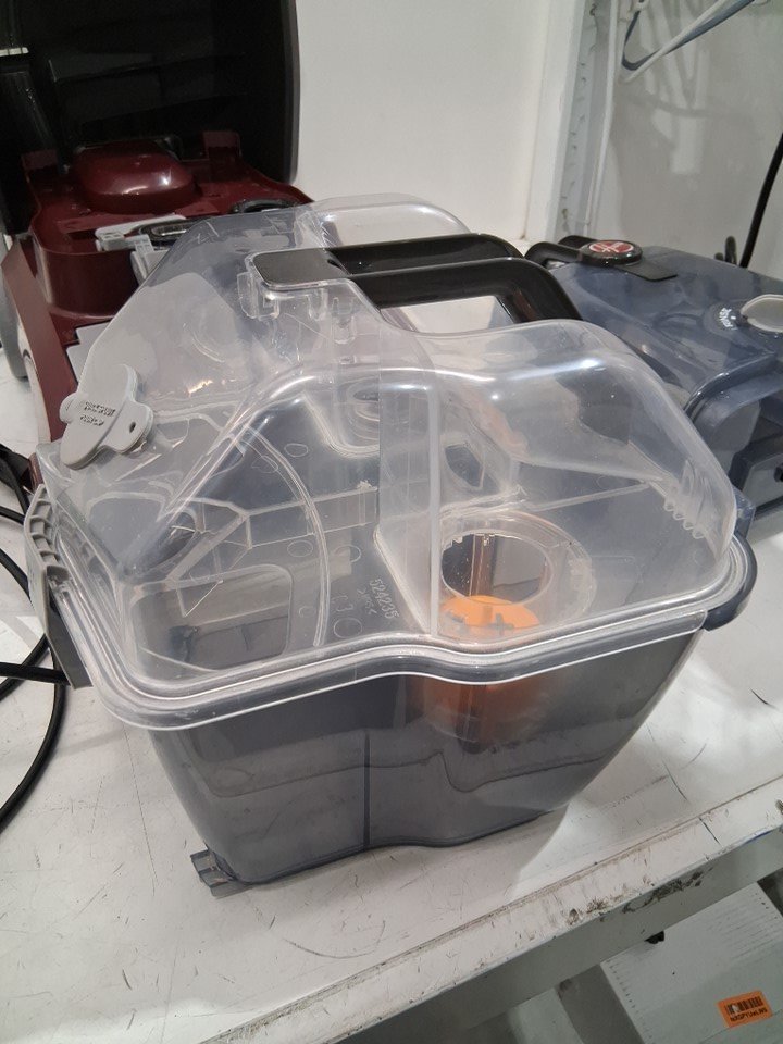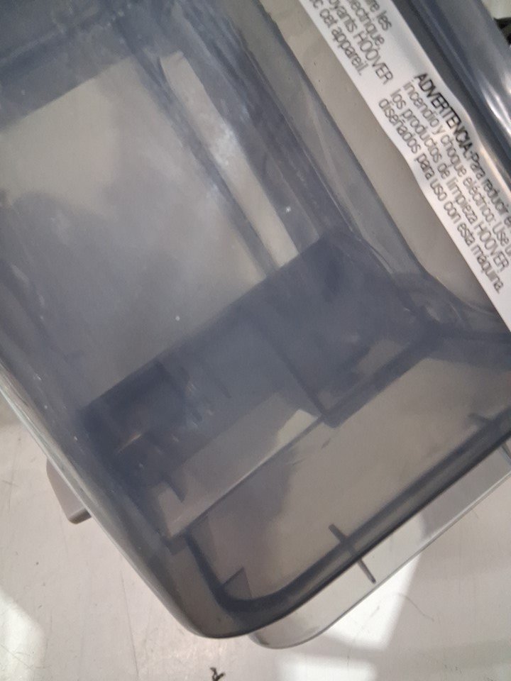 product has some dirt and debris present on the spin scrub brush head as well as lint and fluff attached to the brush head and inside the clear plastic above the brush, there is a wet tank with some left over water inside as well. and some other minor and light surface marks and stains on the handle and other areas of the product. product was tested for power.