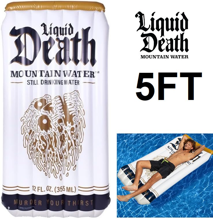 Liquid Death Extra Large Inflatable Float for Pool, Beach & Lake - 5ft - white