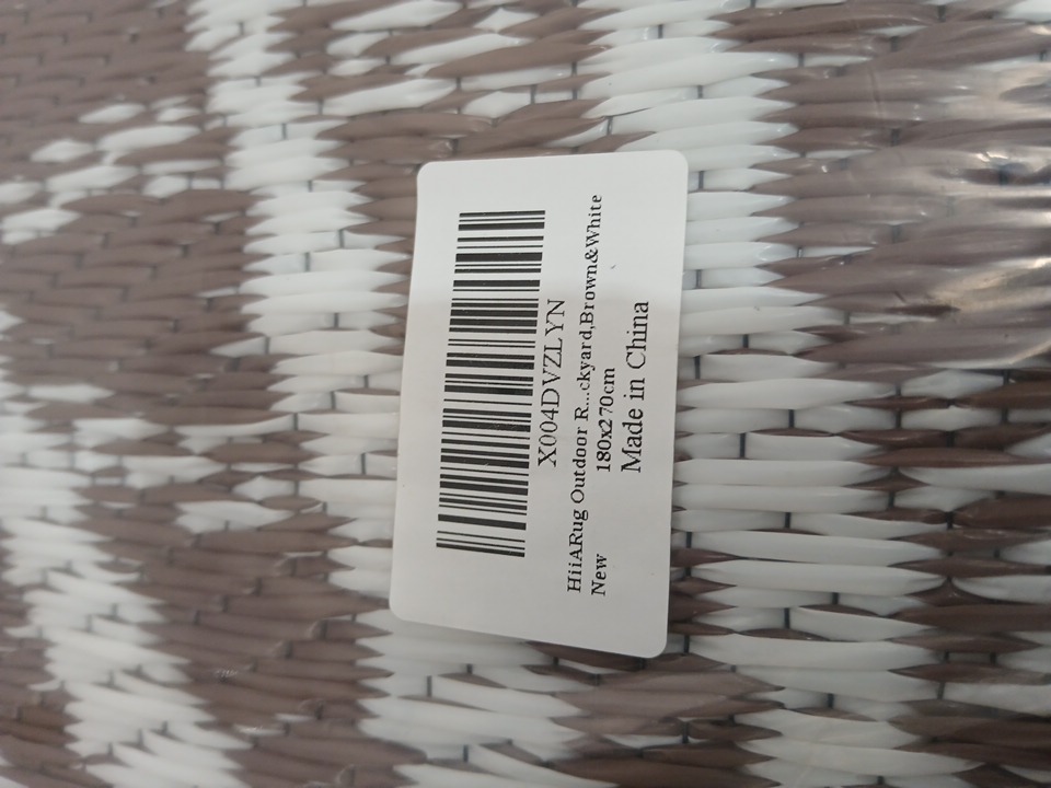 HiiARug Outdoor Rug for Patio Waterproof Plastic Straw Outdoor Carpet - 6ft x 9ft - brown/white