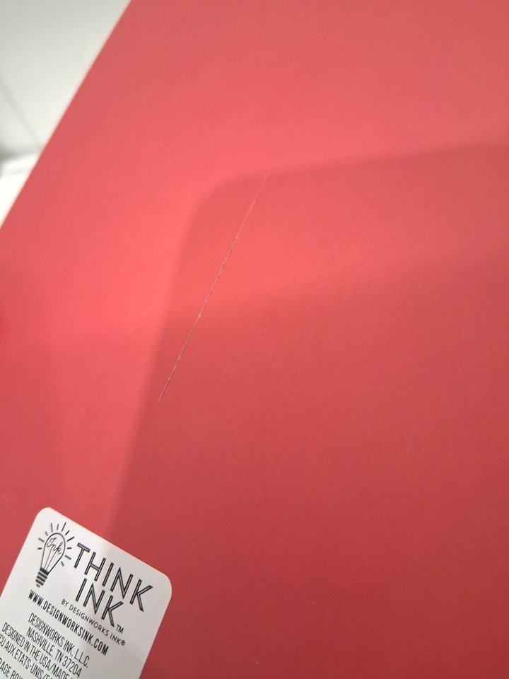 there is a knife cut on the back (see photos)