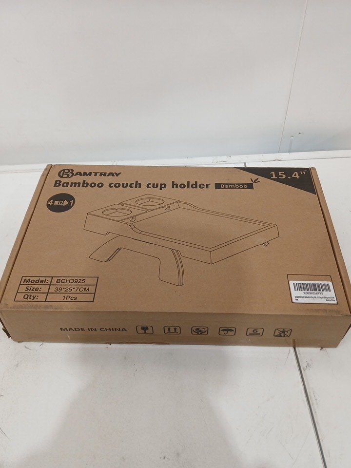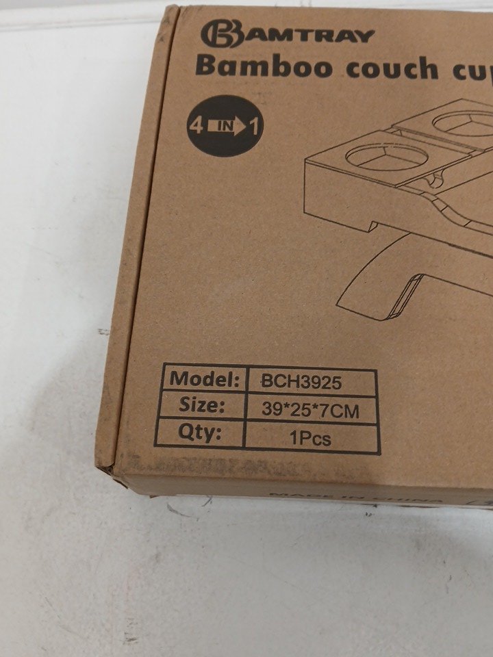 BAMBOOTRAY BAMBOO COUCH 4-IN-1 CUP HOLDER - 15.3" x 9.84" x 2.75" - natural bamboo (MODEL: BCH3925)