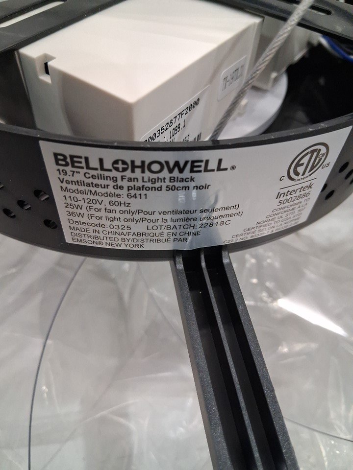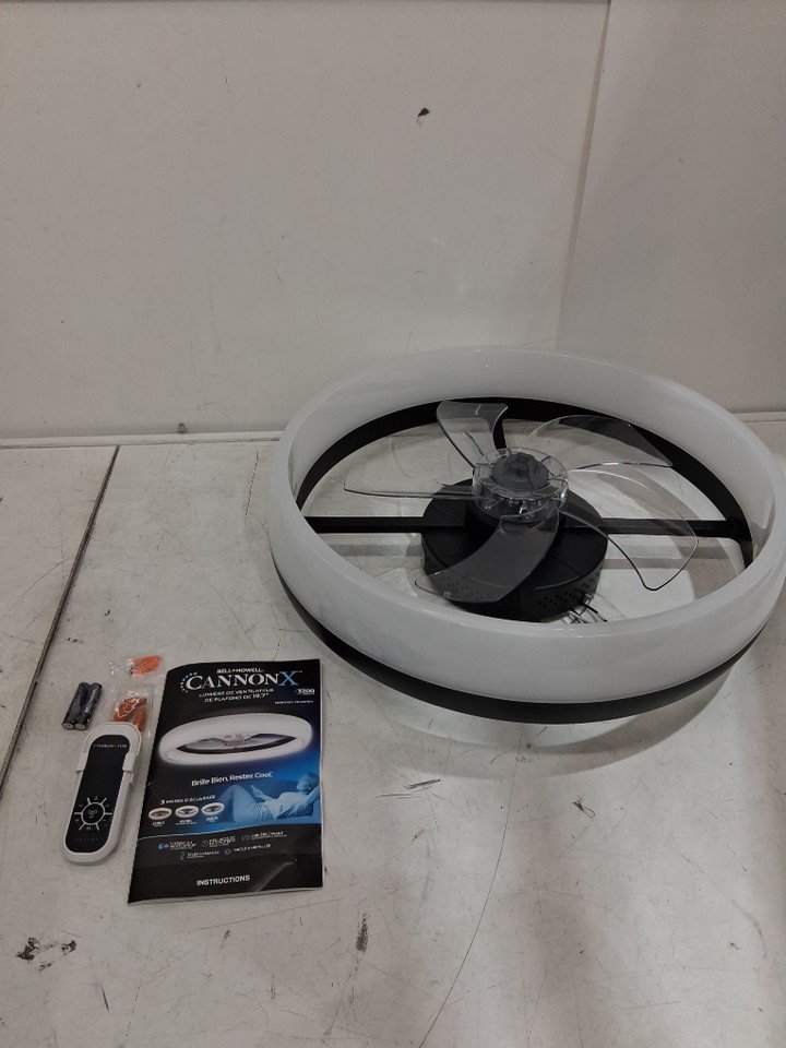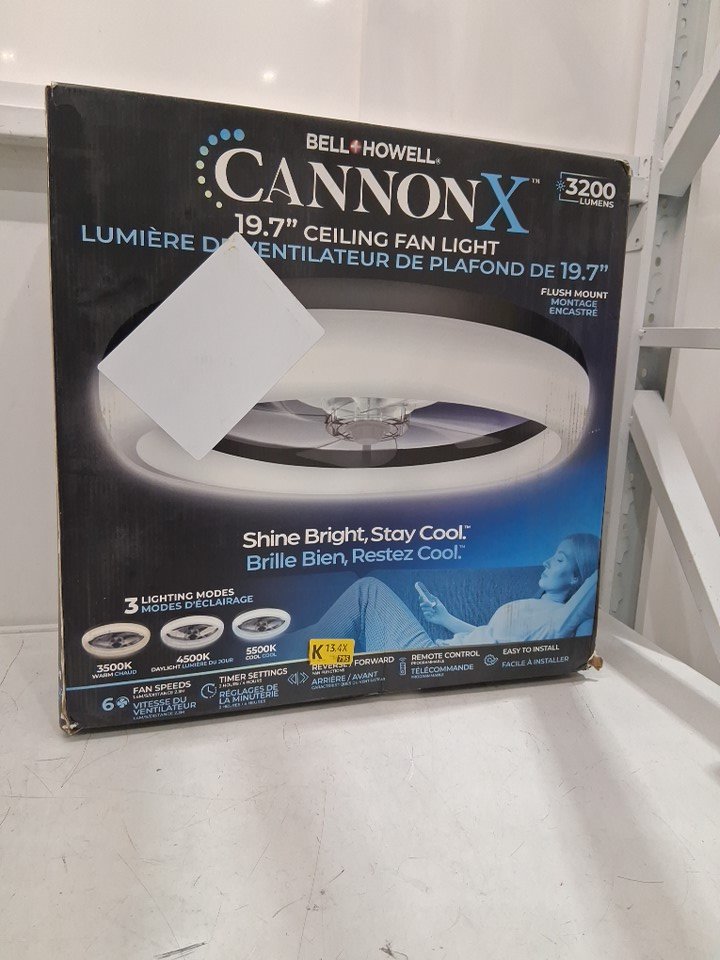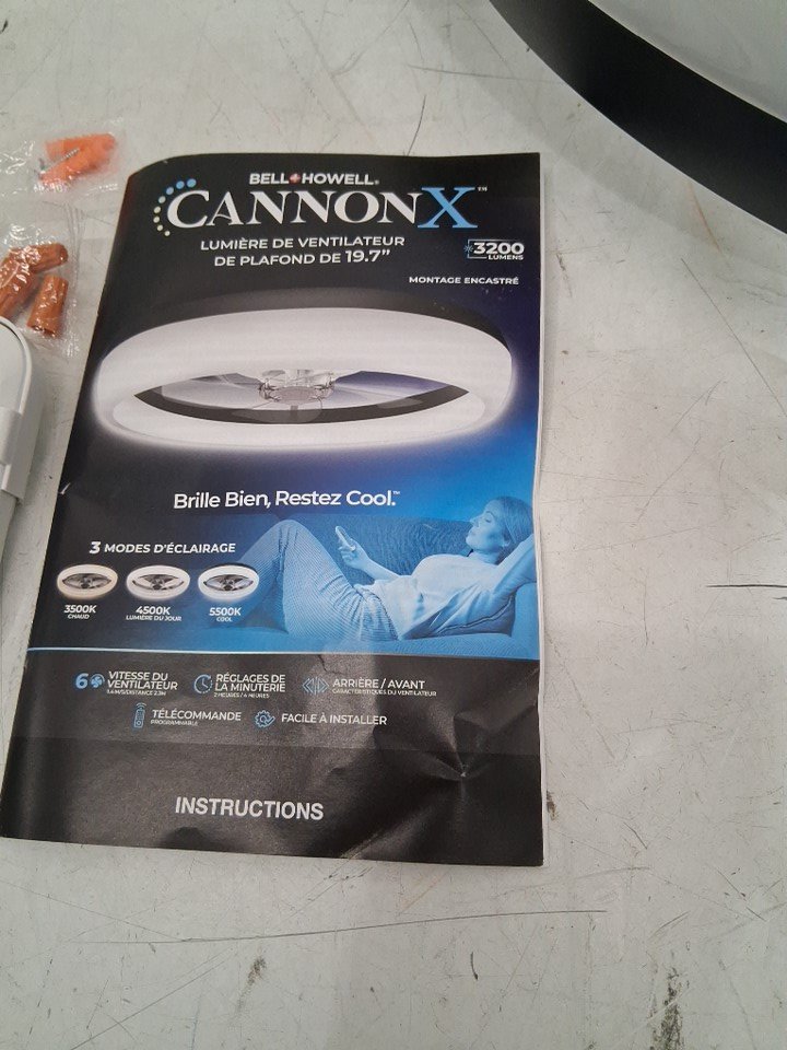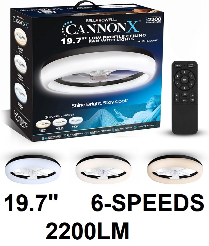 Bell+Howell CannonX low profile ceiling fan with light and remote, 6 speeds 3 light modes - 19.7" - 2200LM - Black/white (model: 6411)