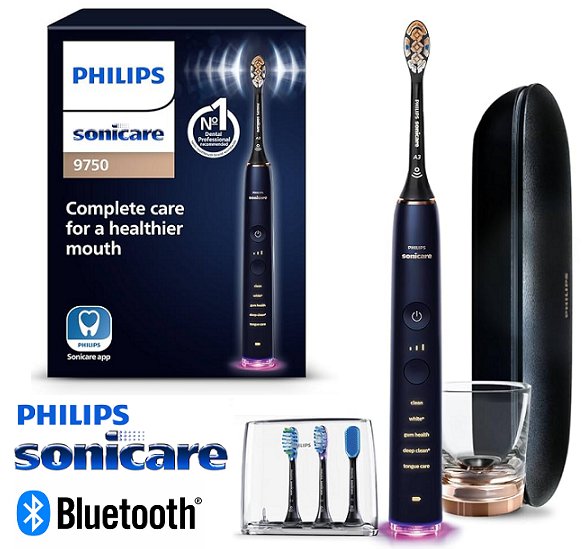 philips sonicare diamond clean smart 9750 power electric toothbrush with bluetooth - lunar blue (model: hx9954/74)