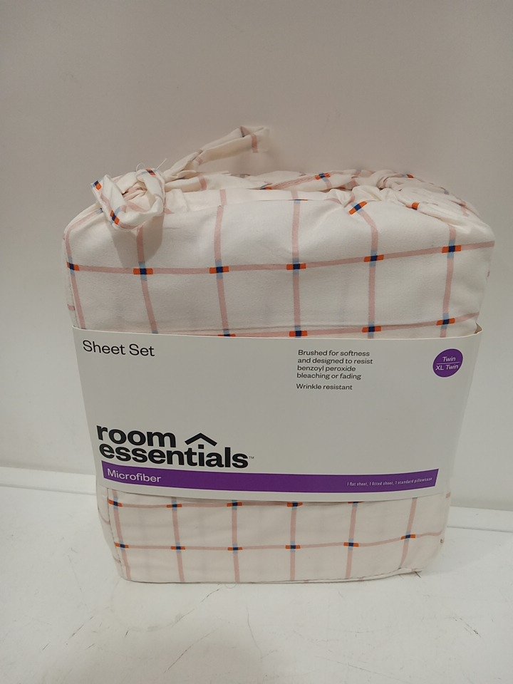 3pc room essentials Microfiber Sheet Set - TWIN/EXTRA LARGE TWIN - Pink Grid