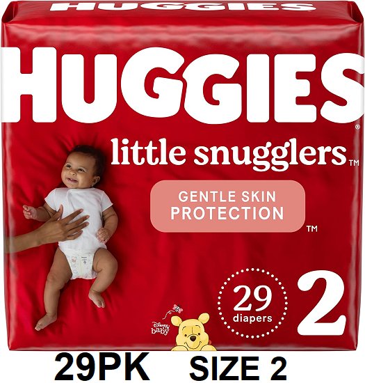 29PK UNISEX INFANTS HUGGIES LITTLE SNUGGLERS GENTLE SKIN PROTECTION DIAPERS - SIZE 2 - WINNIE THE POOH