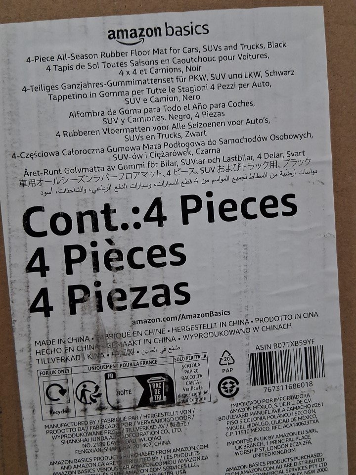 4pc amazon basics universal fit Rubber Carpet Floor Mats For Car SUV Van and Truck - 25" x 17.5" (FRONT)/ 13" x 17.5" (REAR)- black (MODEL: c250626tv6k4))