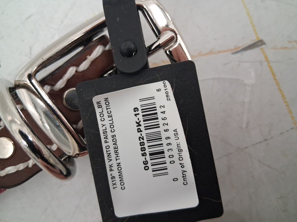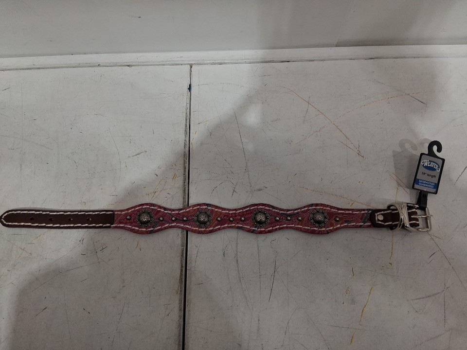 Weaver leather vintage paisley dog collar with metal buckle - 1"x19" - pink/brown - (model: 06-5882-pk-19)