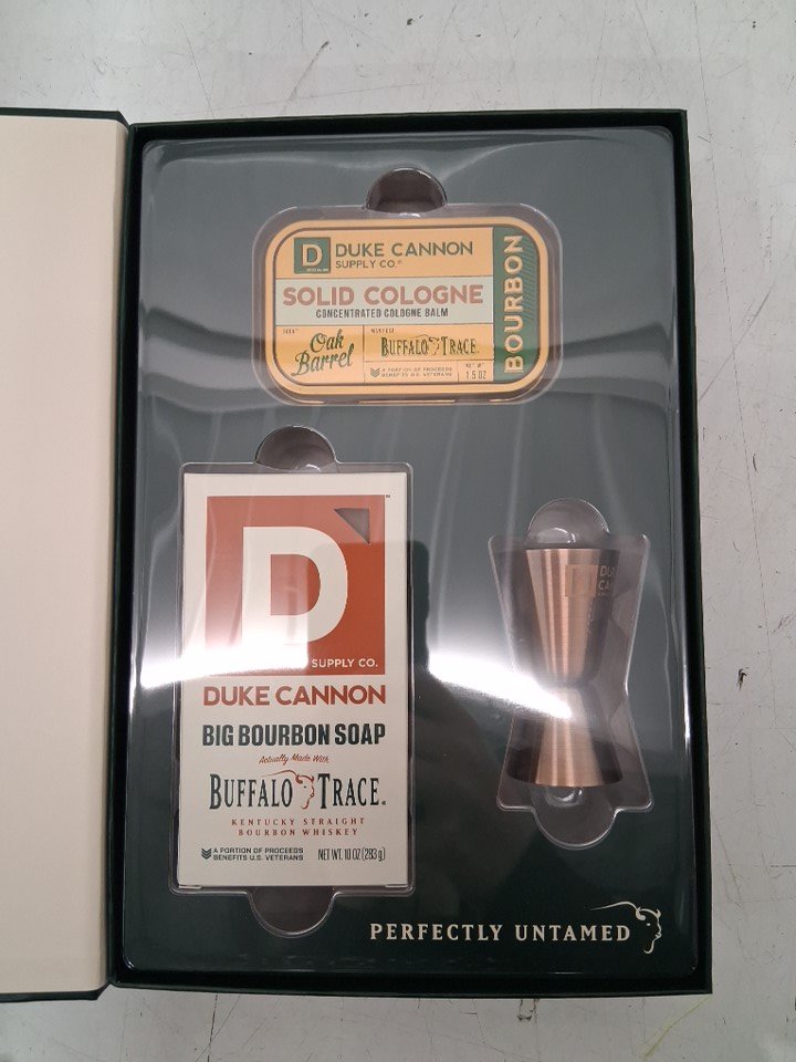3PC Duke Cannon Supply Co. Men's Buffalo Trace Bourbon Barrel Gift Set - bar soap, solid cologne and copper jigger