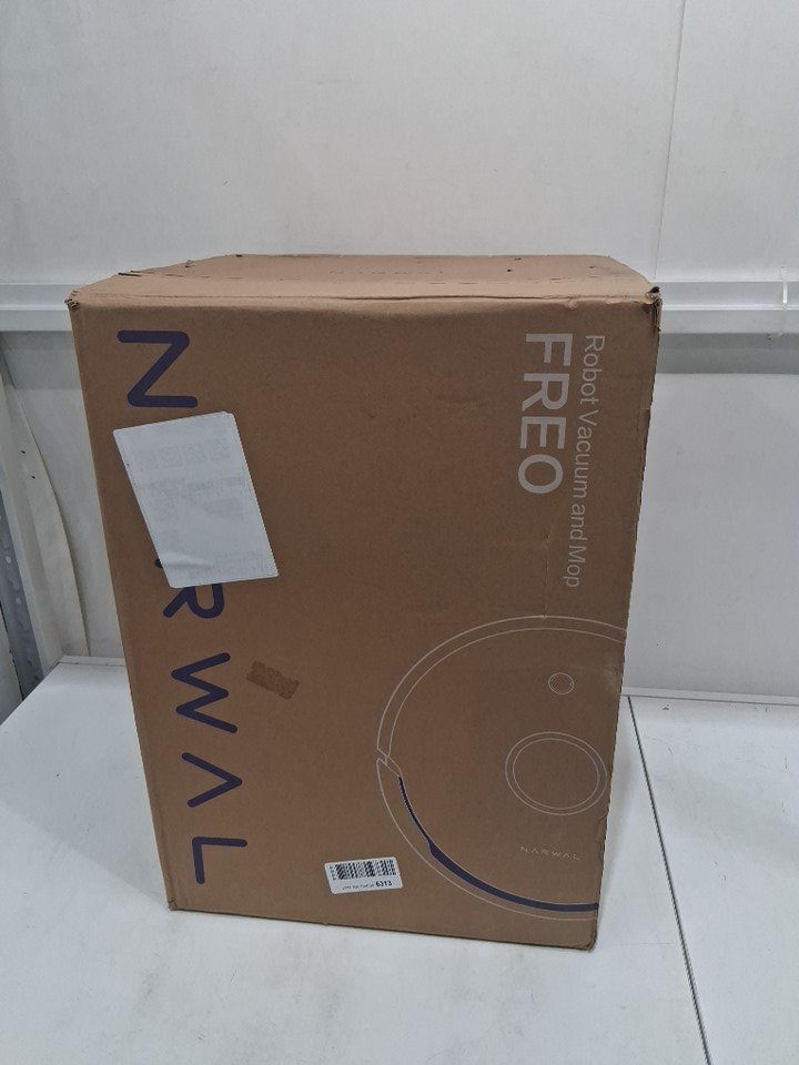 narwal freo 4-in-1 robot vacuum & mop combo, with washing & drying self empty base, dirt sense ultra clean, auto add cleaner & wifi/app control - white (model: yjcc012)