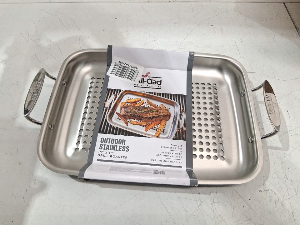 All-Clad Outdoor Stainless Steel Roaster pan with handles - 15" x 11" - silver (MODEL: j1370464)