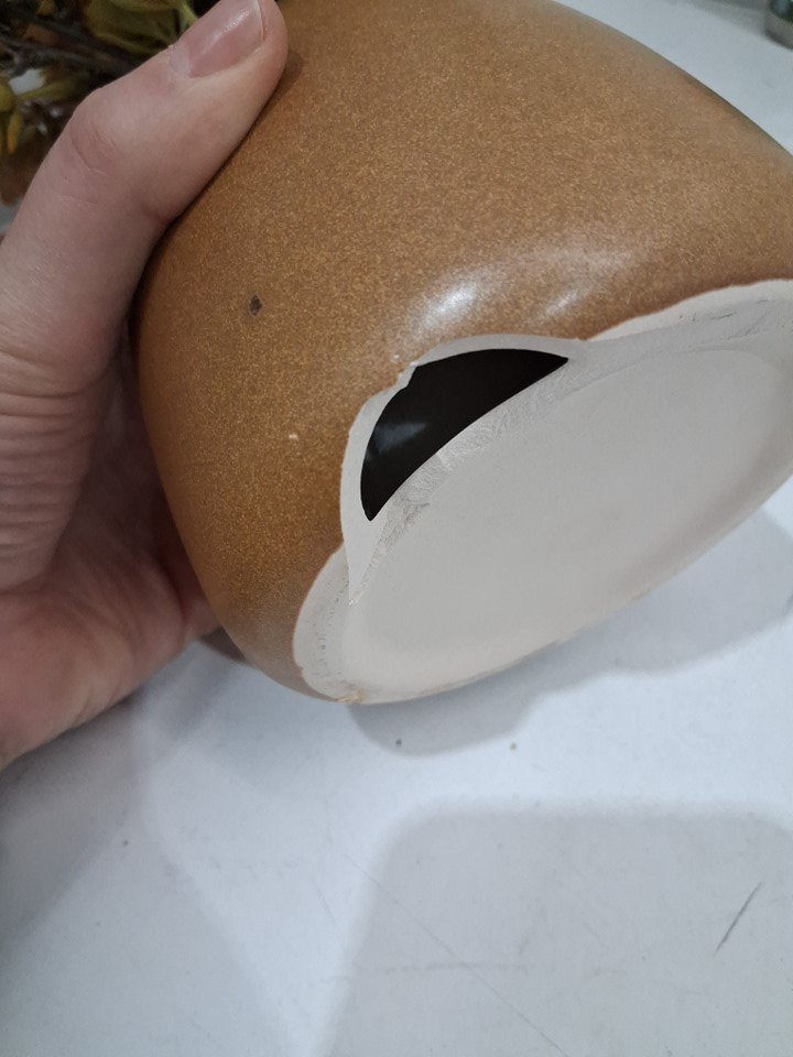 there is a hole in the bottom of the pot, not noticeable when placed with it at the back