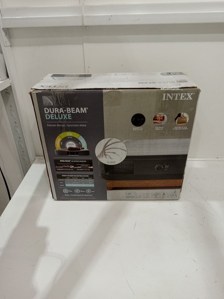 INTEX DURA-BEAM SERIES DELUXE COMFORT PLUSHFIBER-TECH inflatable AIR mattress WITH INTERNAL ELECTRIC PUMP - 18" - QUEEN - grey (MODEL:AP619D/64413ED)