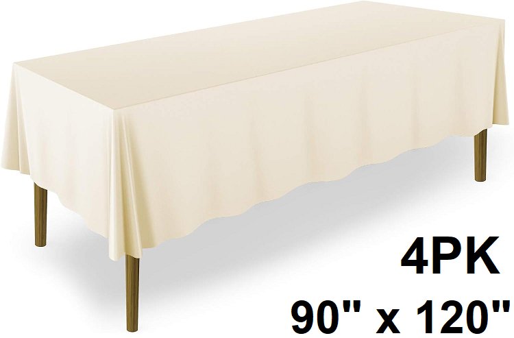 4pk woven polyester tablecloths - 90"x120"/each - ivory