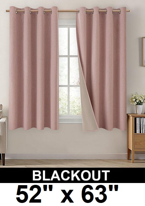 (2 PANEL) HOMEIDEAS SHEER LINEN GROMMET TOP WINDOW blackout PRIVACY CURTAINS - 52" X 63" - BLUSH PINK