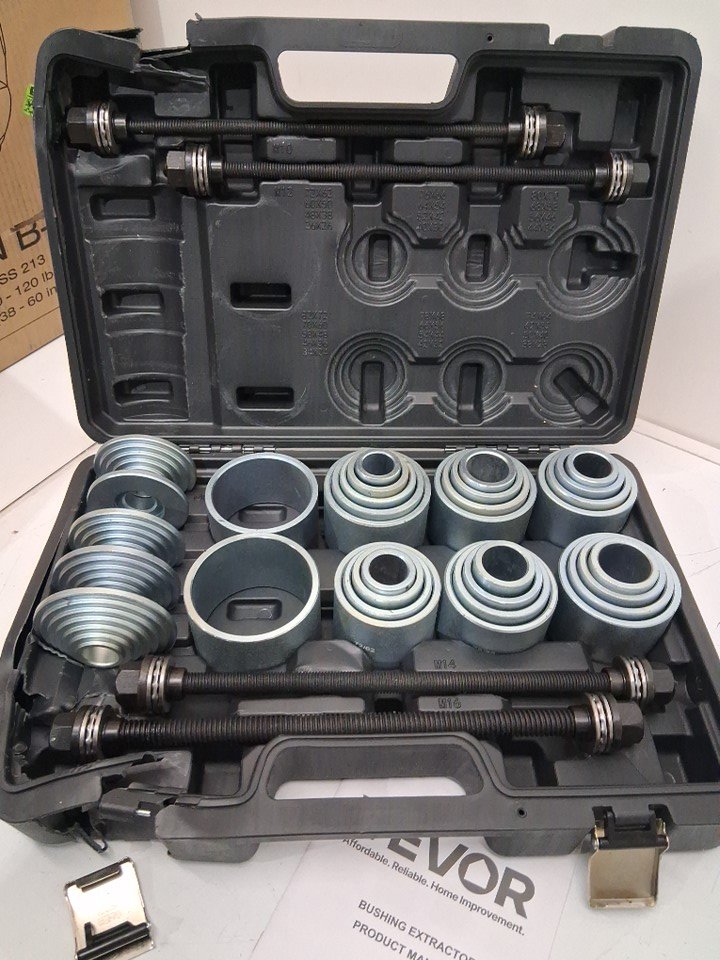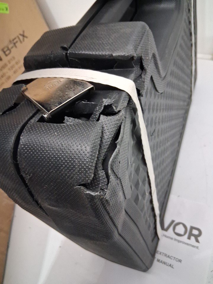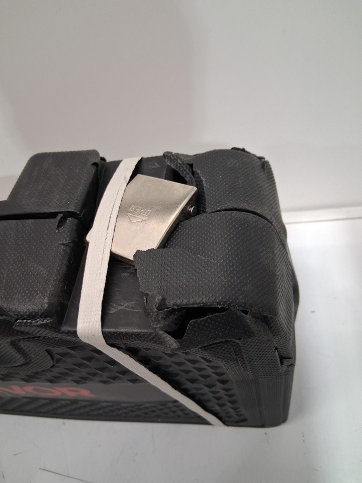 The case was damaged in shipping - corner smashed and one lock is broken but still had the factory ties present, we cut these to confirm that all contents were present (see photos)