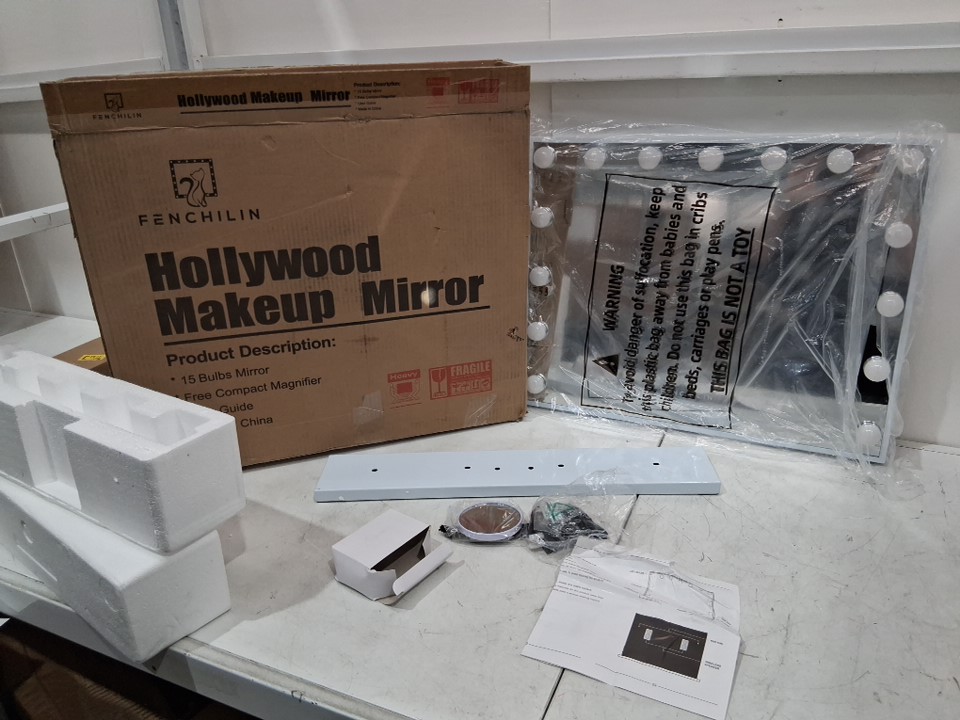 Fenchilin VANITY MIRROR WITH LIGHTS MAKEUP MIRROR WITH 15 LED BULBS - 23" X 18" - light blue (model: Dc117-24jm)
