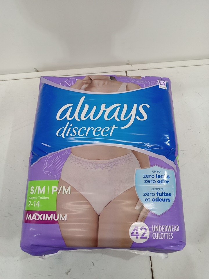 42pk women's always discreet maximum protection disposable underwear - small/medium - pink