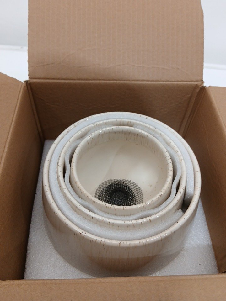 3PC LE TAUCI CERAMIC PLANT POTS, INDOOR PLANTER WITH DRAINAGE HOLE & MESH COVER - 4"/5"/6.5" - BEIGE