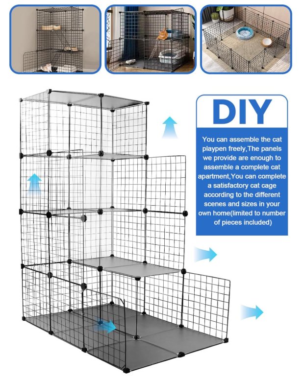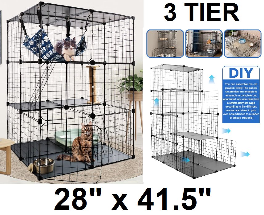 Kalolary 3 Tier DIY pet Enclosure - 28" x 41.5" - black
