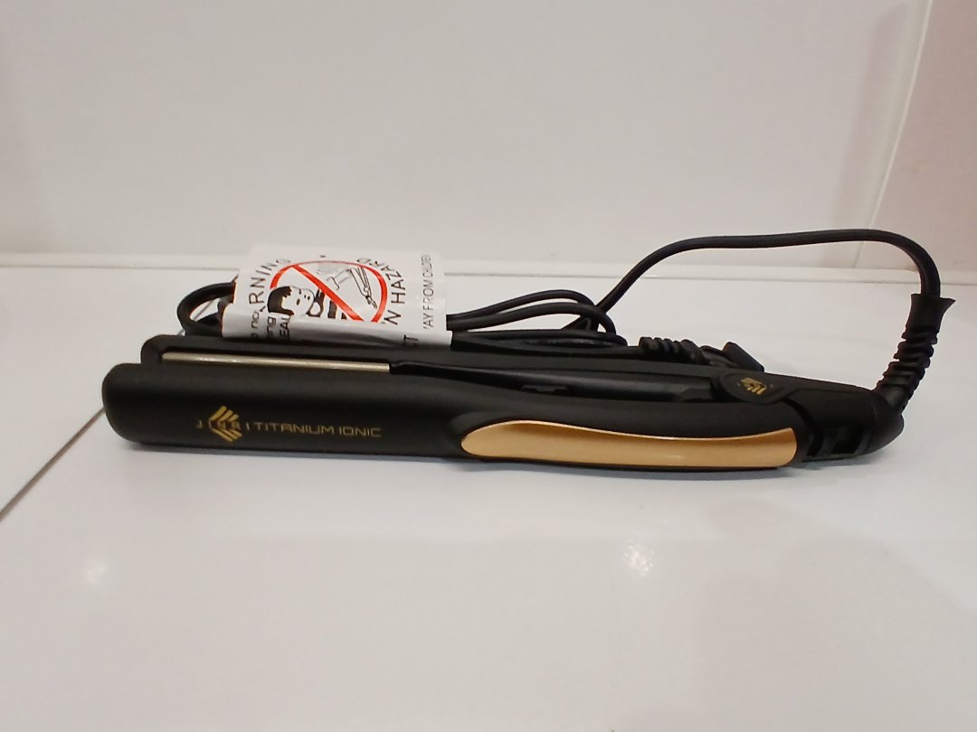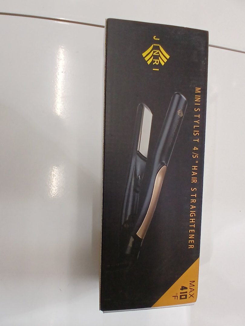 Jinri Professional Titanium Mini Flat Iron Hair Straightener - Max 410°F - 4/5" - Black / gold