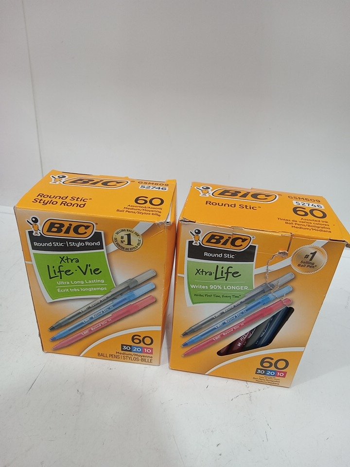 2 (60pc) BIC Round Stic Extra Life Long-Lasting Ink Ballpoint pens - black/blue/red