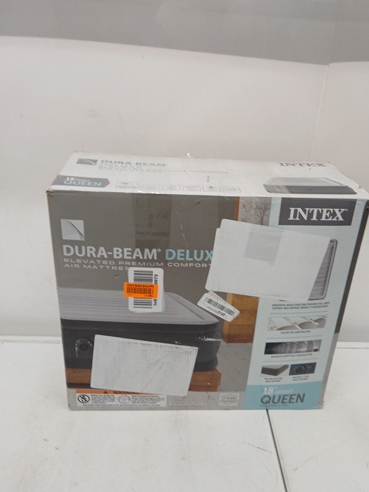 INTEX DURA-BEAM SERIES DELUXE COMFORT PLUSHFIBER-TECH inflatable AIR mattress WITH INTERNAL ELECTRIC PUMP - 18" - QUEEN - grey (MODEL:AP619D/64413ED)