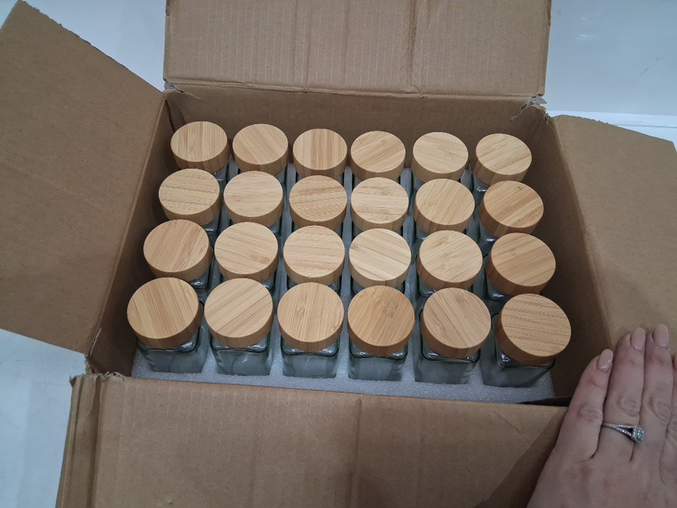 24pk dimbrah glass spice jars with bamboo lids and labels - 4oz - clear/brown