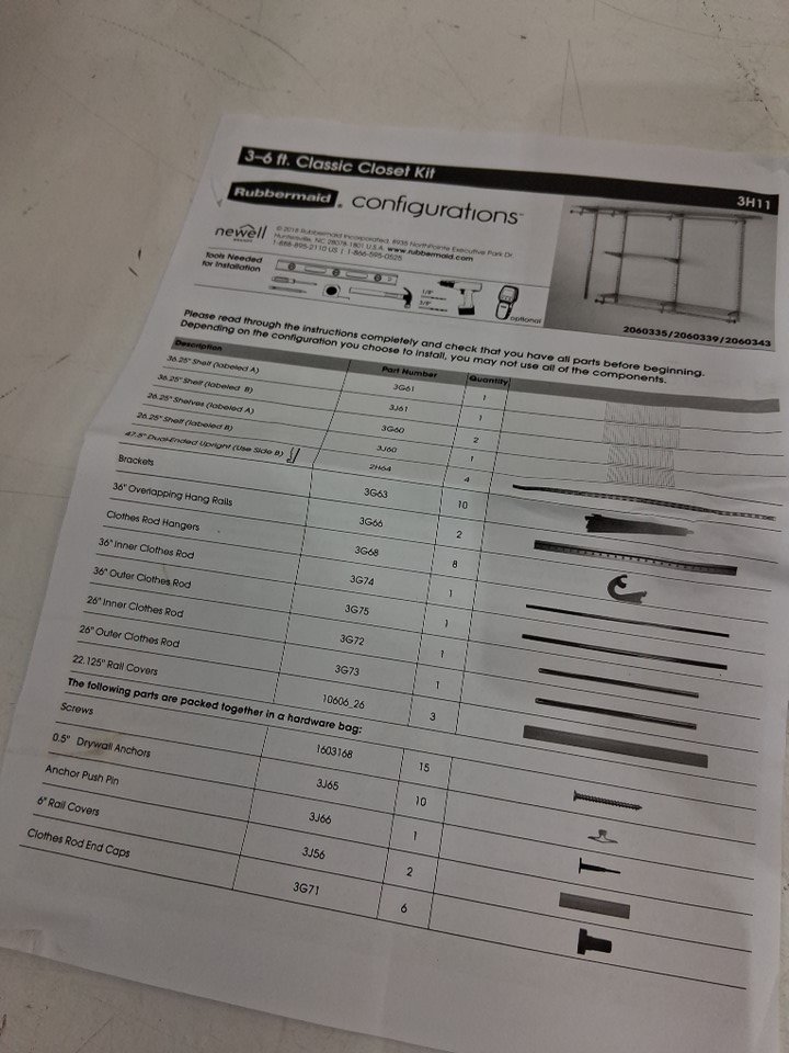 Rubbermaid Configurations Classic Custom Closet Kit - 3FT to 6FT - Titanium (MODEL:3H11)
