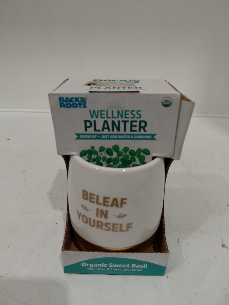 back to the roots wellness planter " beleaf in yourself" organic sweet basil grow kit